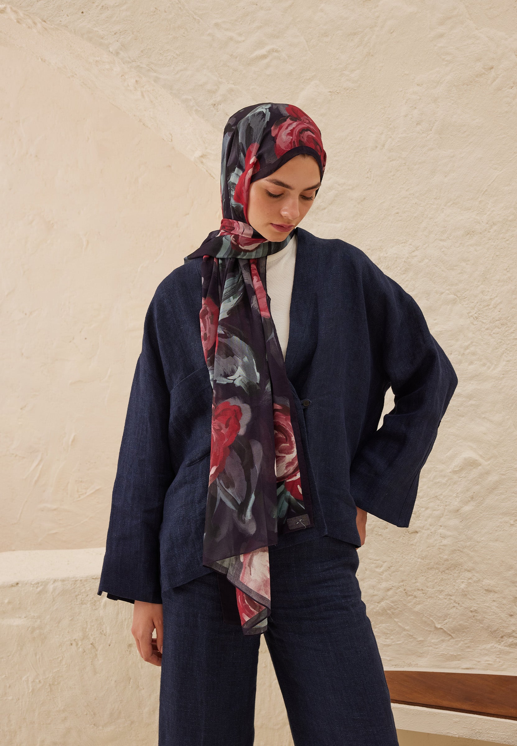 SUMMER ROSE DESEN RAMİ ŞAL LACİVERT