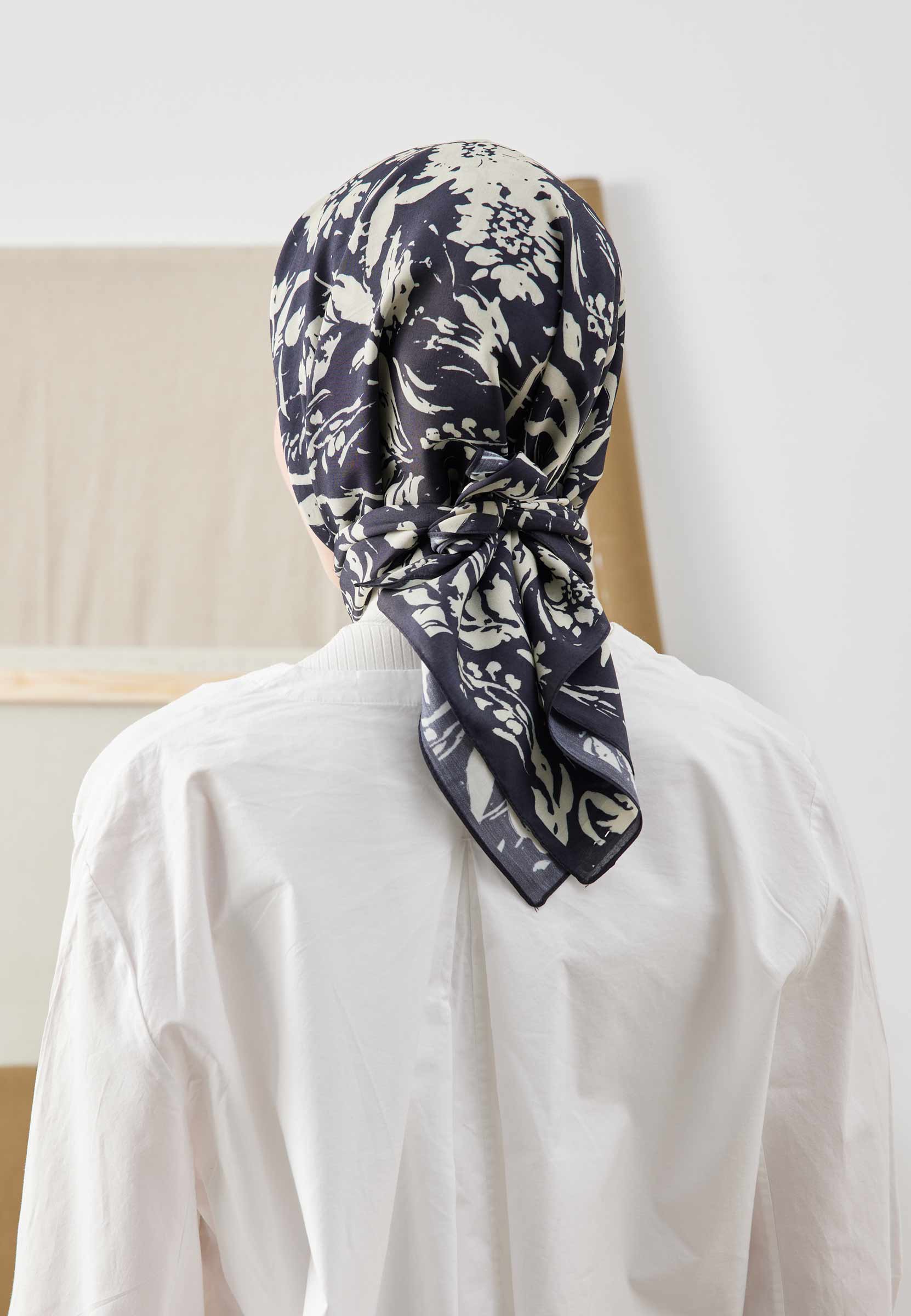 VIOLET DESEN PAMUK İPEK EŞARP SİYAH