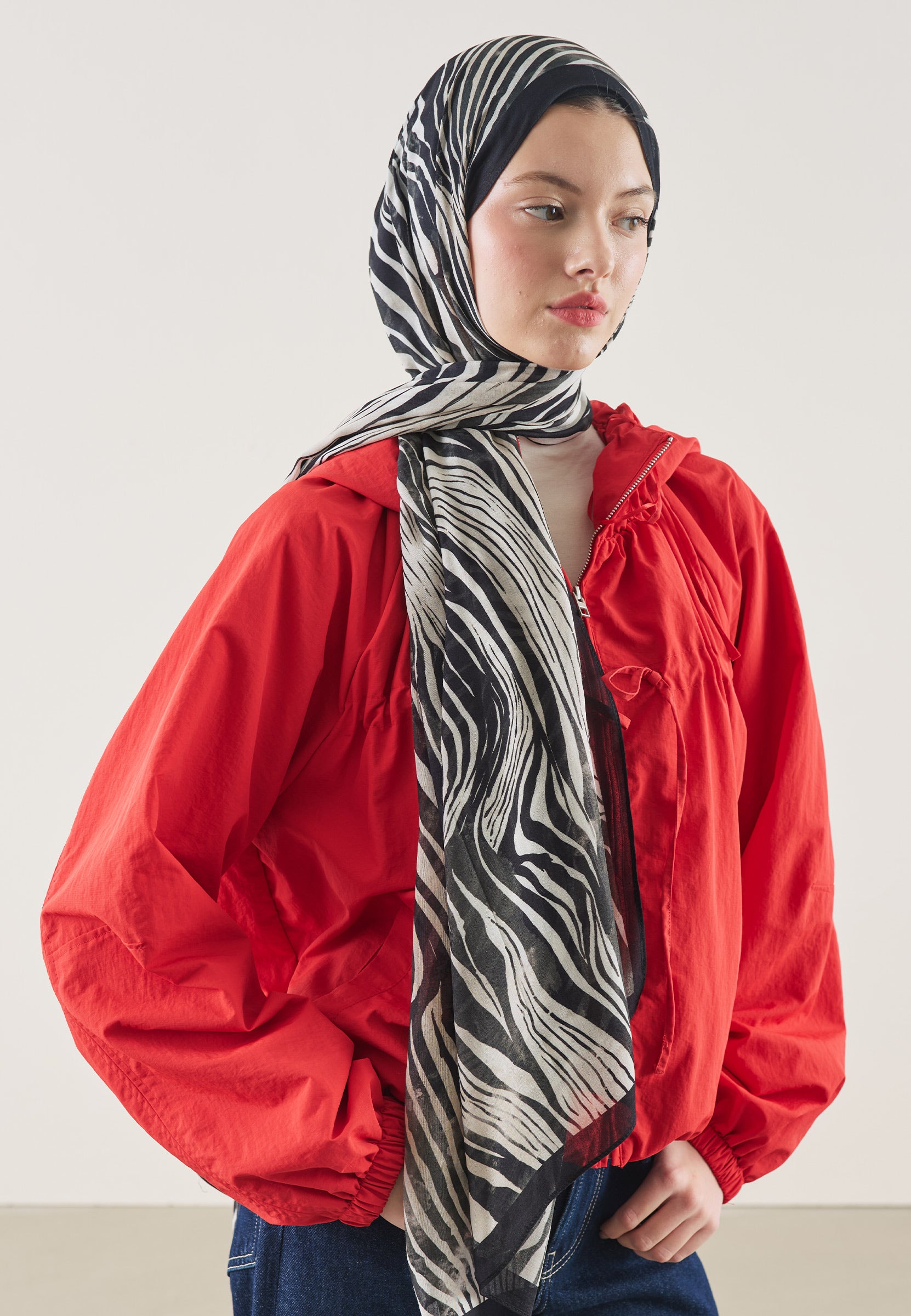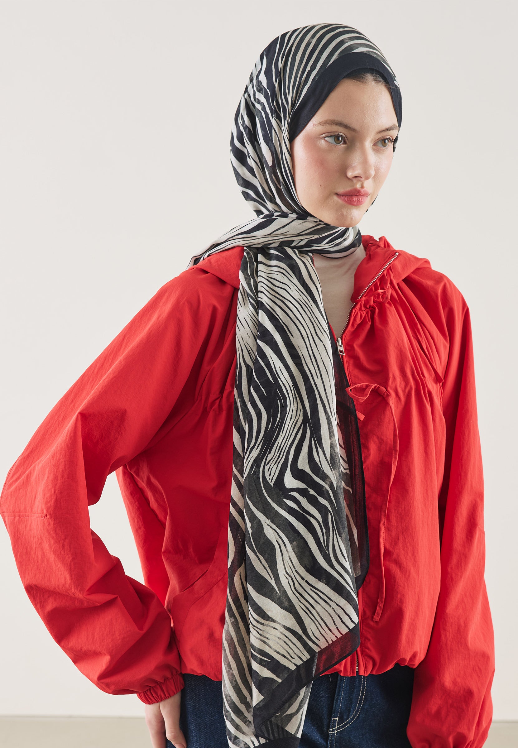 Wild Zebra Pattern Rami Hijab Black