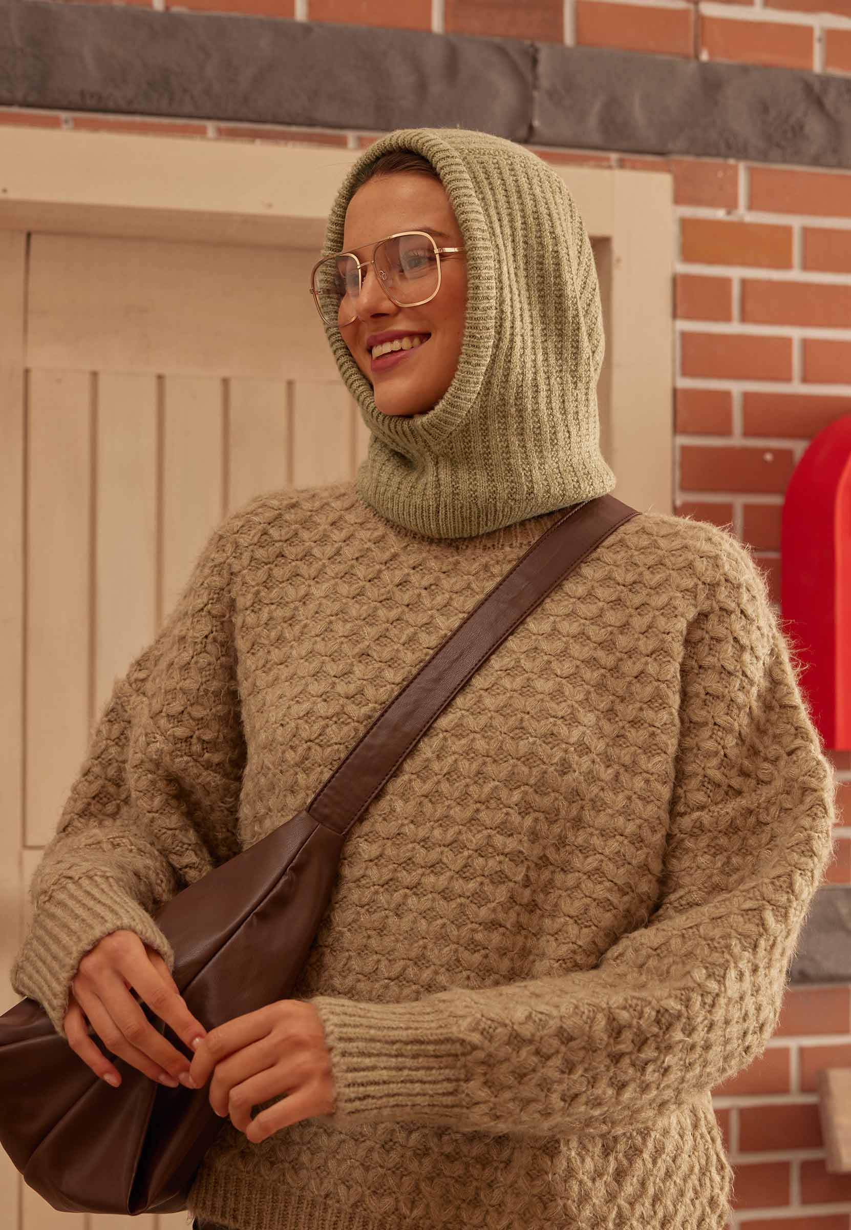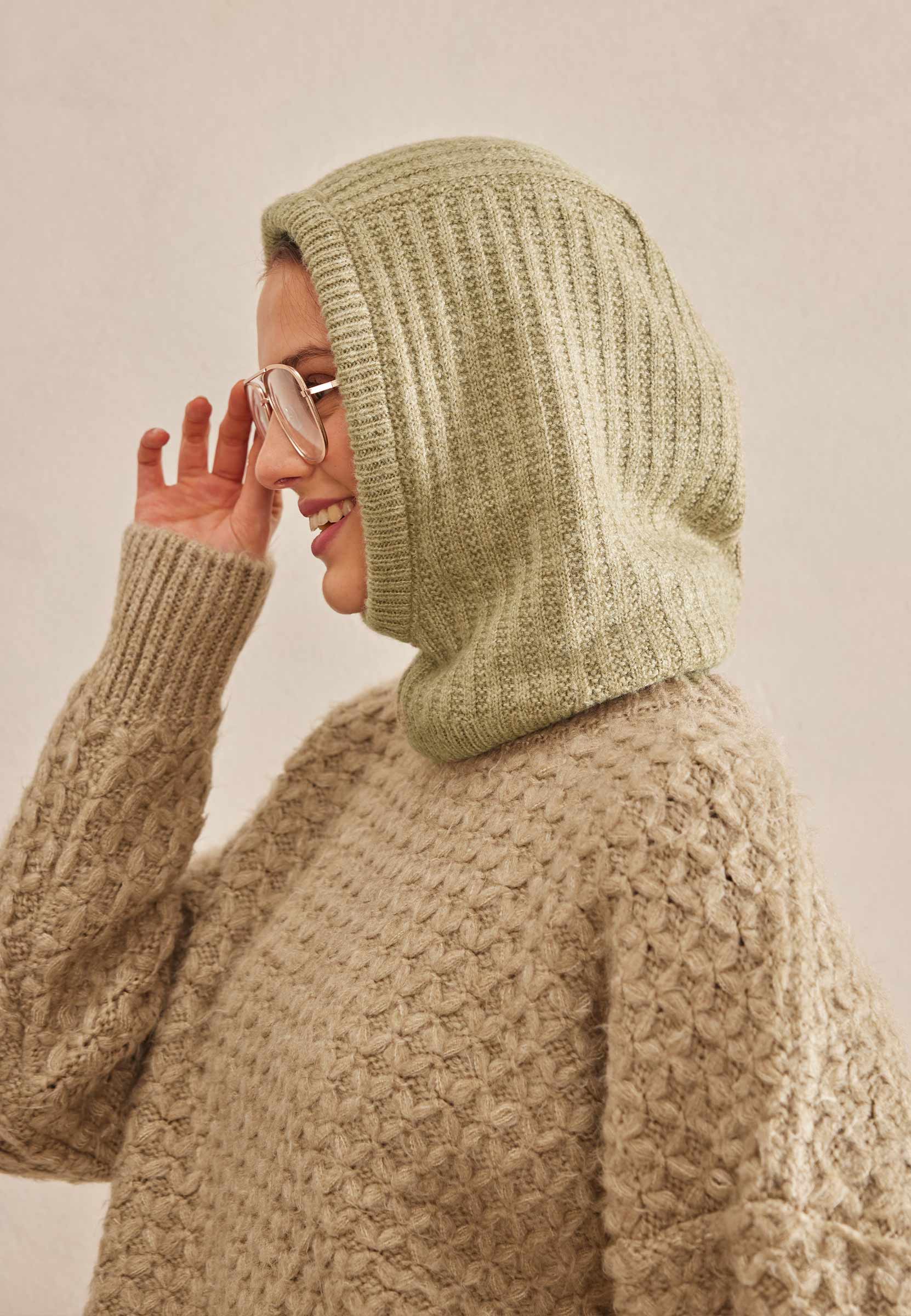 Örme detaylı Başlık-Balaklava Kapşonlu, yumuşak dokusuyla gün boyu konforlu bir kullanım sunuyor.